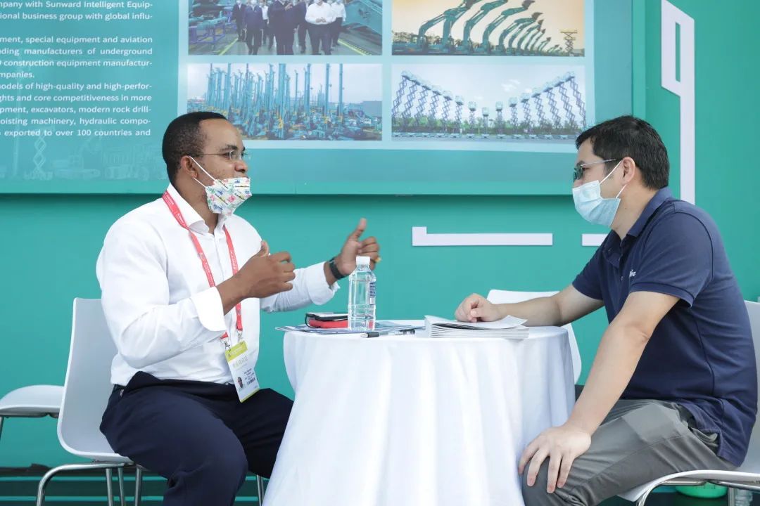 亮相期间,山河智能展区不断吸引央级企业客户、外贸商、代理商、非洲客户的到访。这些慕名而来的专业客户在参观展示设备、了解品牌的同时,与公司国际营销人员,深入沟通产品细节,并探寻合作的开展。