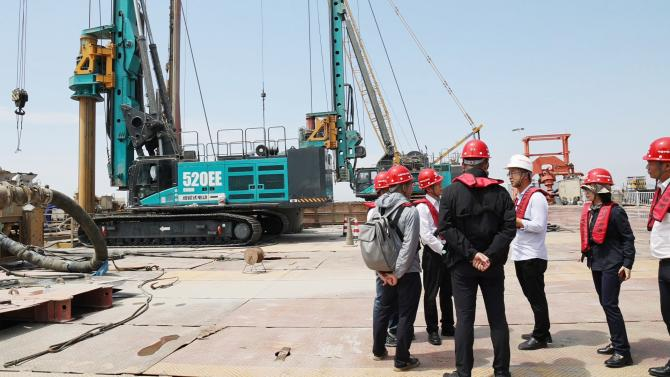 超级装备助建超级工程!山河智能装备股份有限公司副总经理朱建新带着研发团队、销售团队相关负责人实地考察杭州湾项目,同时也给全球客户带来一场别开生面的“云参观” 。